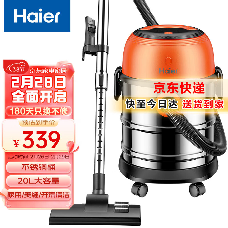 海尔(Haier)桶式吸尘器 20L大容量干湿吹三用大功率大吸力家用吸尘器HZ-T720价格:339.00元!