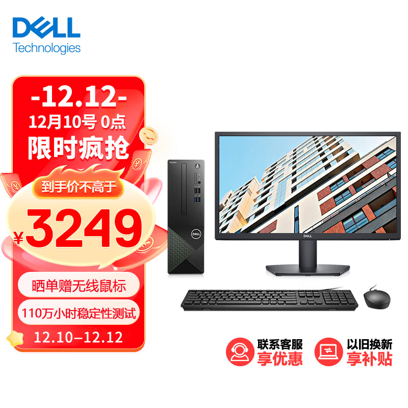 戴尔(Dell)成就3020 台式电脑主机 高性能整机 (13代i3-13100 8G 256GSSD+1TB三年上门)21.5英寸显示器价格:3249.00元!