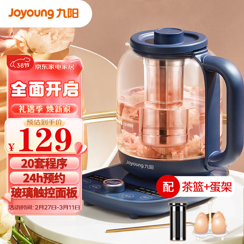 九阳 Joyoung养生壶煮茶器煮茶壶电水壶热水壶烧水壶电热水壶1.5L玻璃花茶壶K15D-WY2180价格:129.00元!