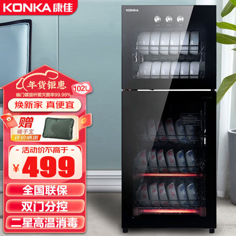 康佳(KONKA)商用消毒柜家用消毒碗柜立式臭氧杀菌红外线高温大容量102L双门ZTP168K23(B)价格:499.00元!