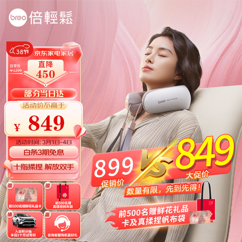 倍轻松(breo)颈椎按摩器Neck5 颈肩部按摩器肩颈按摩仪按摩枕物理十指揉捏恒温热敷 38三八妇女节女神节礼物价格:1069.00元!