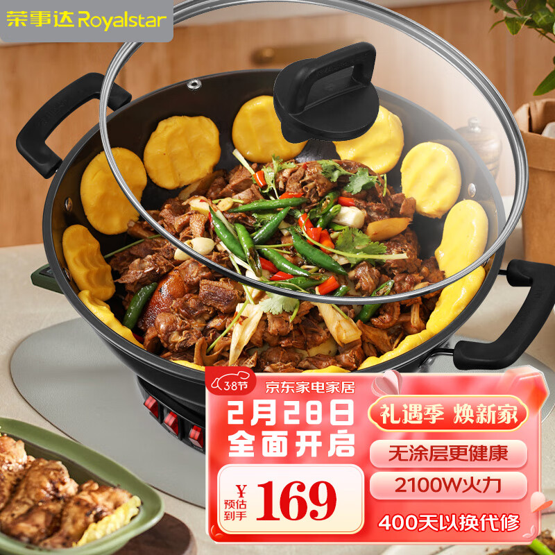 荣事达 电炒锅 家用铸铁多功能电热锅电铸铁锅炒锅多用途锅电锅电煮锅电火锅电蒸锅 RDAF-32价格:179.00元!