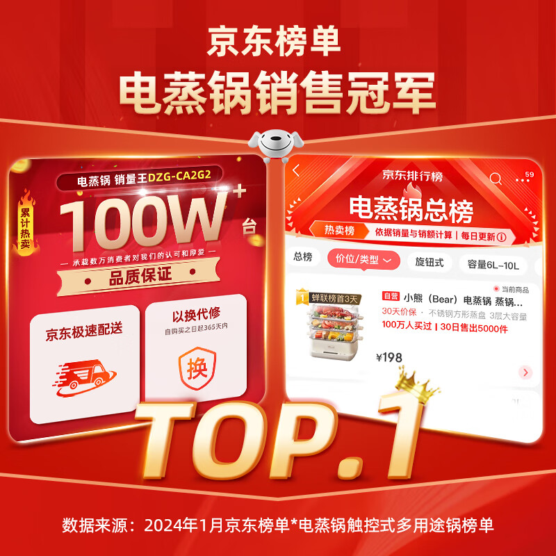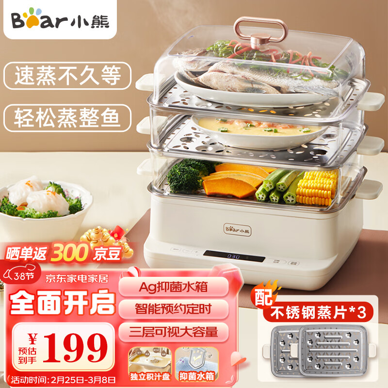 小熊(Bear)电蒸锅 蒸锅家用 可视电蒸箱 多功能早餐蒸鱼三层大容量蒸笼 不锈钢蒸盘 DZG-CA2G2价格:198.00元!