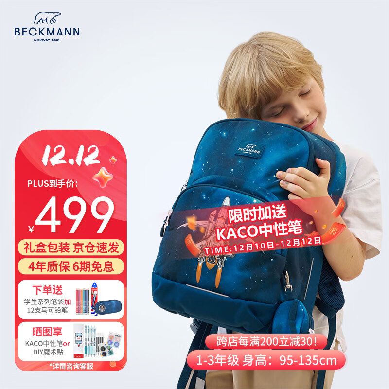 Beckmann挪威护脊减压书包小学生1-3年级儿童双肩包男女童轻便透气背包价格:799.00元!