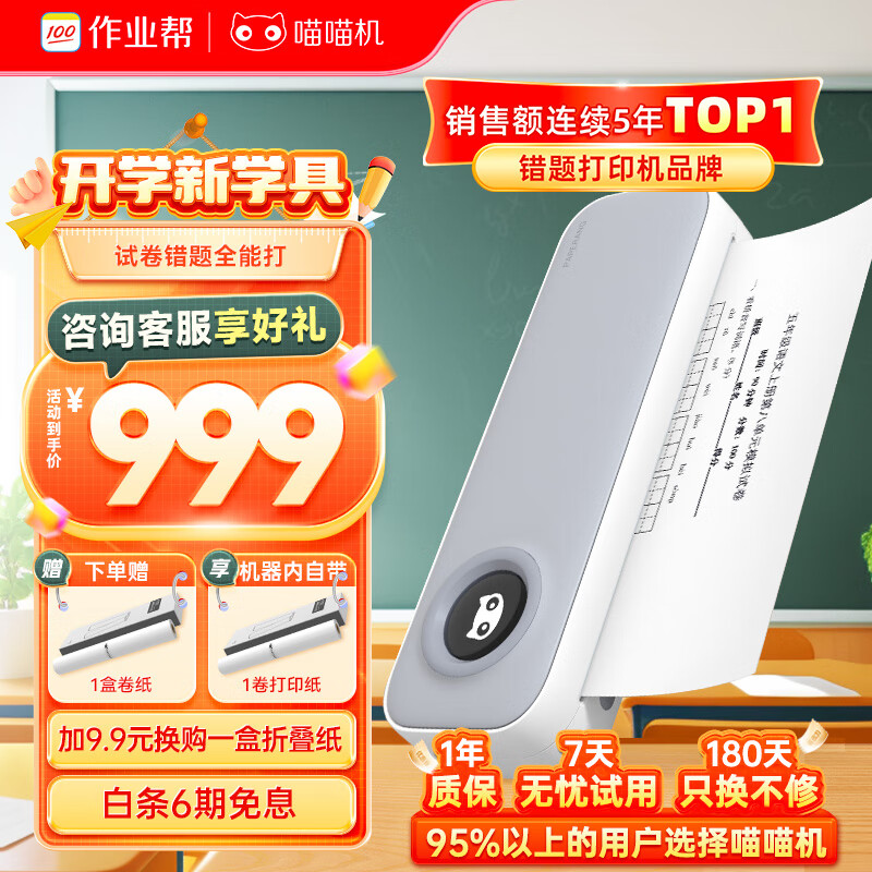 喵喵机A4高清错题学习打印机错题整理神器无墨远程打印小型便携桌面热敏打印机家用 F2S尊享版价格:999.00元!