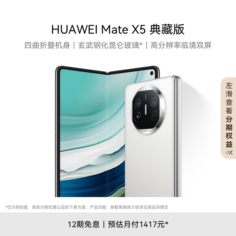 华为(HUAWEI) Mate X5 典藏版 折叠屏手机 16GB+1TB 羽砂白价格:16999.00元!