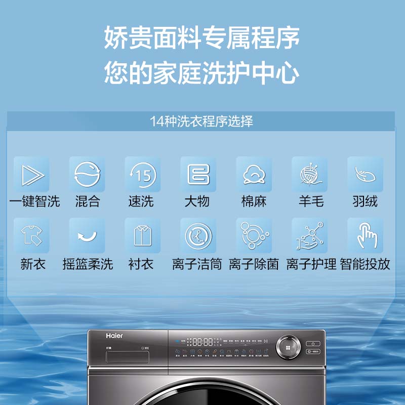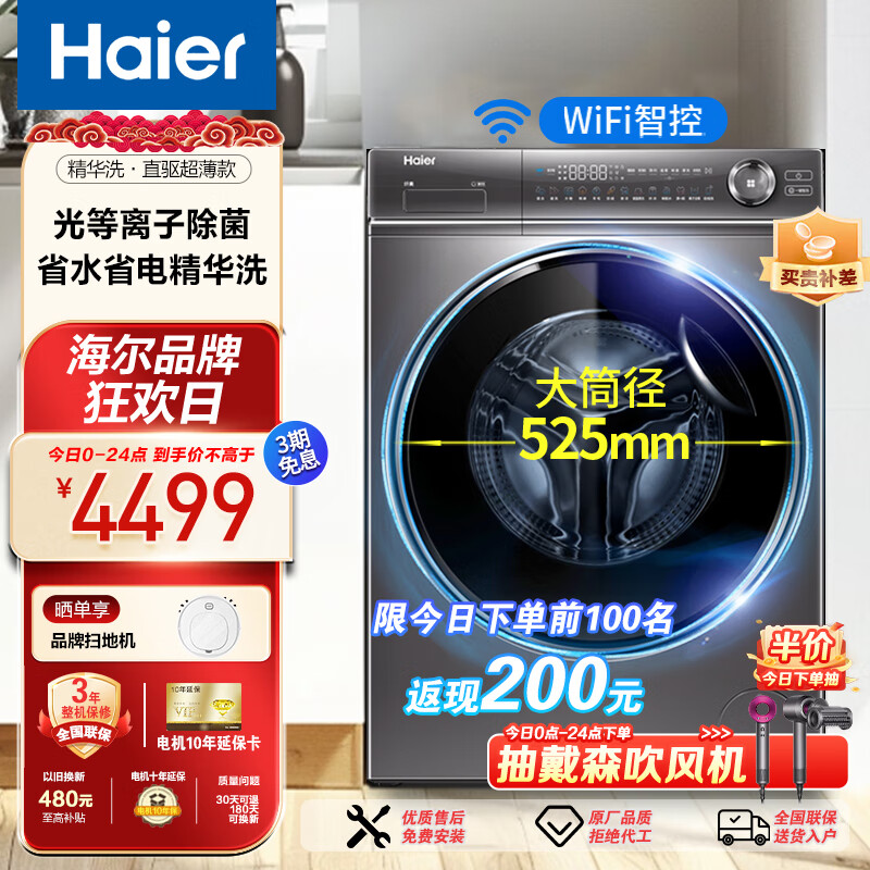 海尔(Haier)10KG全自动滚筒高端洗衣机 超薄直驱变频精华洗省水省电 光等离子除菌洗衣机 APP智控以旧换新价格:4699.00元!
