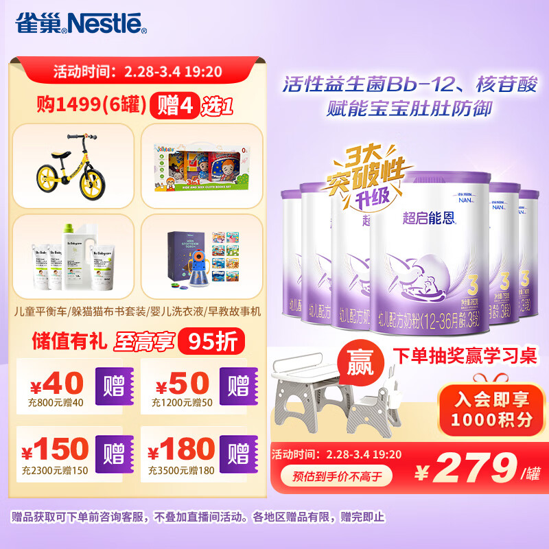 雀巢(Nestle)超启能恩3段幼儿配方奶粉12-36月龄 760g*6罐整箱 新升级价格:1632.00元!