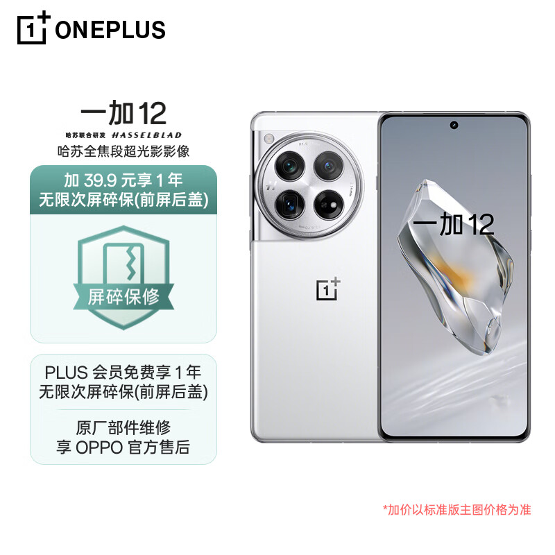一加 12 24GB+1TB 留白 哈苏全焦段超光影影像 2K 东方屏 OPPO 5G游戏旗舰手机【1年无限次屏碎保】价格:5838.90元!
