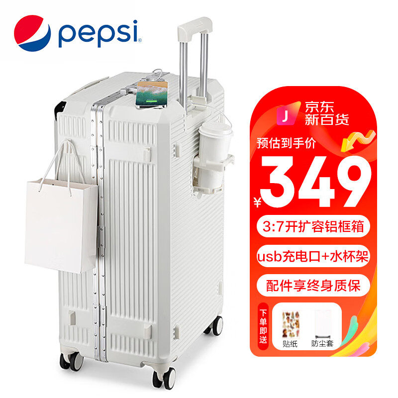 百事(PEPSI)行李箱男超大容量铝框拉杆箱女30英寸加厚旅行箱可抑菌密码皮箱价格:419.00元!
