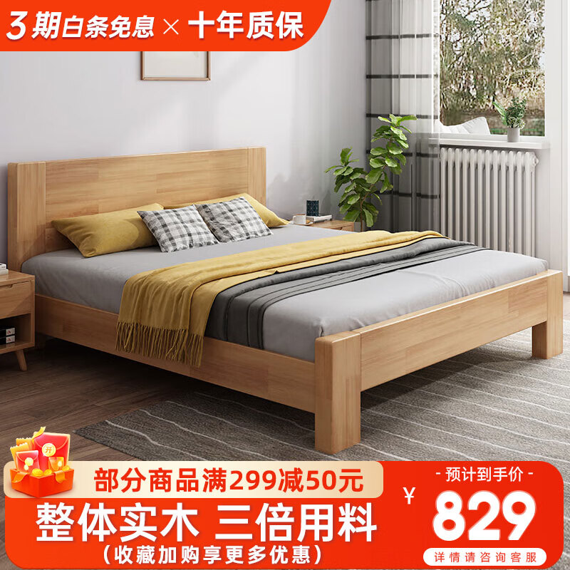 意米之恋橡胶木床实木床 主卧双人床 卧室家具 品质大板 208cm*120cm*80cm价格:879.00元!
