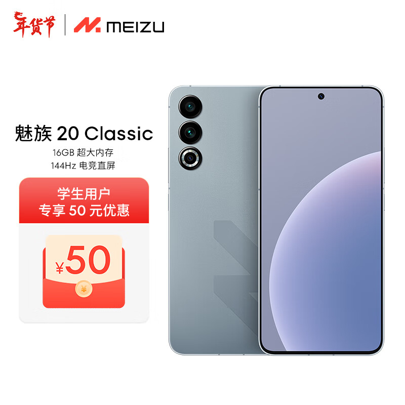 魅族(MEIZU)20 Classic【认证学生专享版】 骁龙8Gen2 144Hz直屏 5G游戏学生拍照 魅族20C 悠扬乌铁 16+512GB价格:2999.00元!