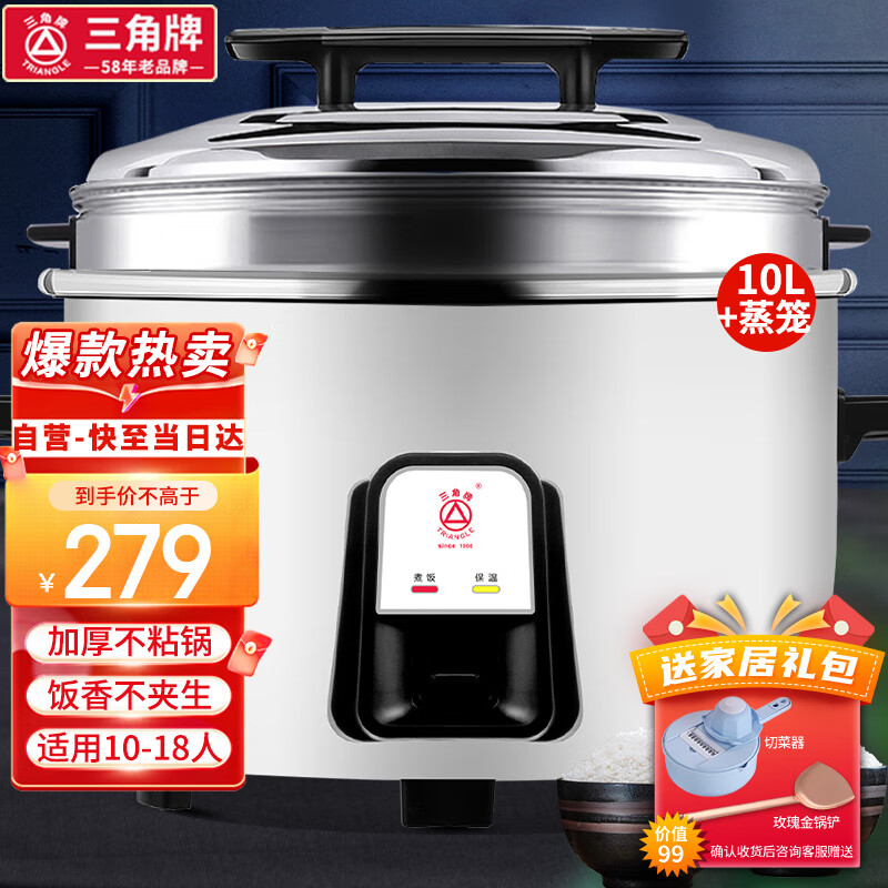 三角牌(Triangle)大容量10人以上电饭锅食堂商用大电饭煲酒店饭店大型超大适用20-40人 10升+蒸笼10-18人用价格:289.00元!