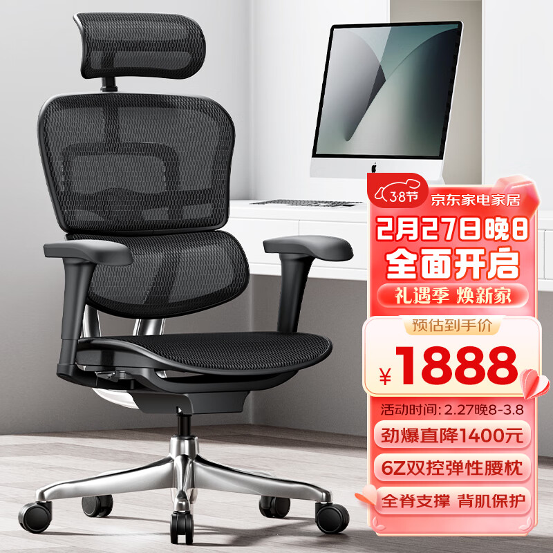 保友办公家具(Ergonor)金豪b 2代人体工学椅护腰办公椅子电脑椅电竞椅 黑色网(Q3.0)价格:3288.00元!