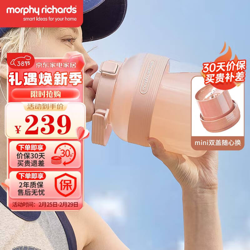 摩飞电器(Morphyrichards)榨汁机 榨汁桶便携榨汁杯无线充电果汁杯随行杯1升容量户外果茶冷泡桶迷你小胖吨MR9805 Nano版 粉价格:239.00元!
