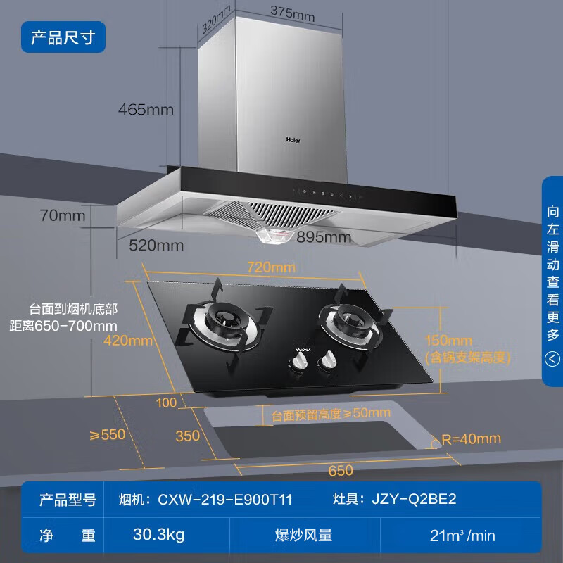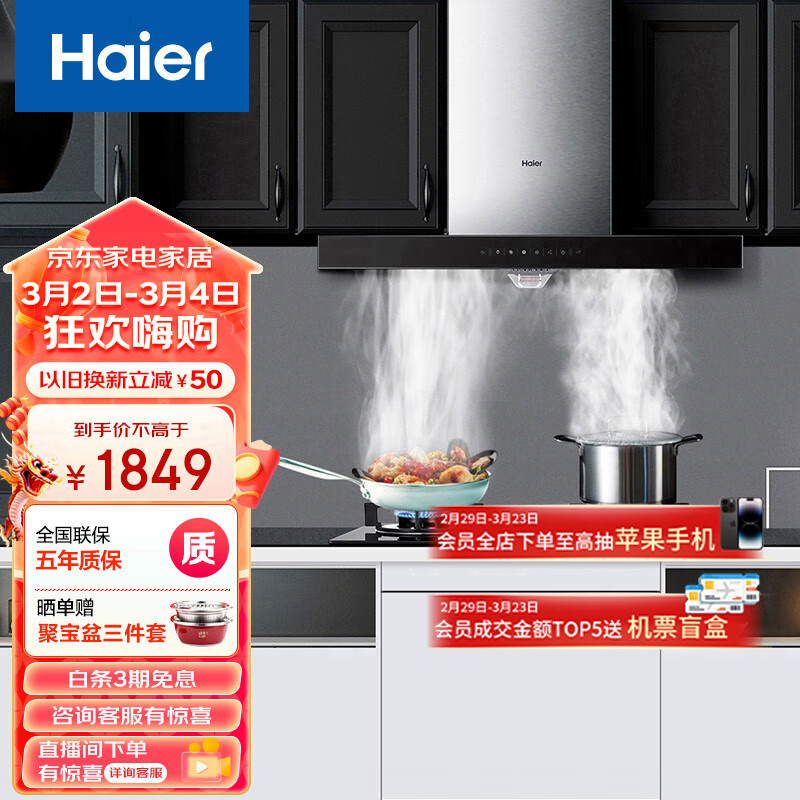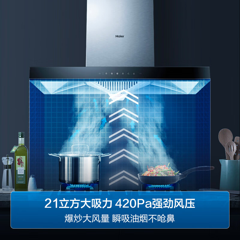 海尔(Haier)抽油烟机 烟灶套装 21m3/min大吸力 挥手智控自旋洗 欧式家用吸油烟机燃气灶 T11+Q2BE2(液)价格:1849.00元!