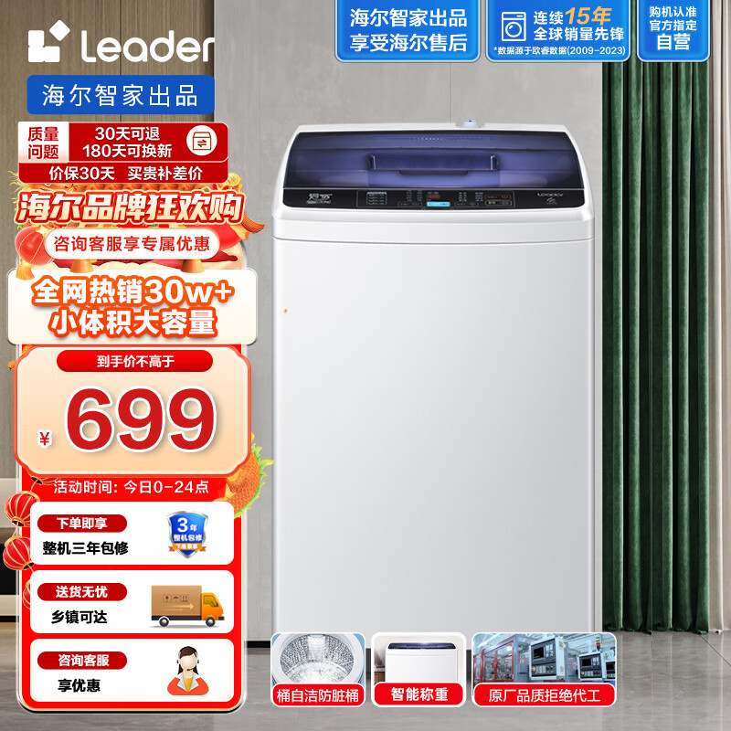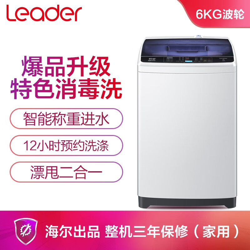 Leader海尔智家出品 波轮洗衣机全自动家电 6公斤租房神器 桶自洁防脏桶 轻柔洗迷你小型@B60M2S价格:699.00元!