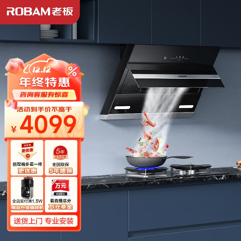 老板(Robam)抽油烟机烟灶套装21风量免拆洗侧吸油烟机燃气灶家用吸油烟机灶具27A3H+57B6DT套装价格:4099.00元!