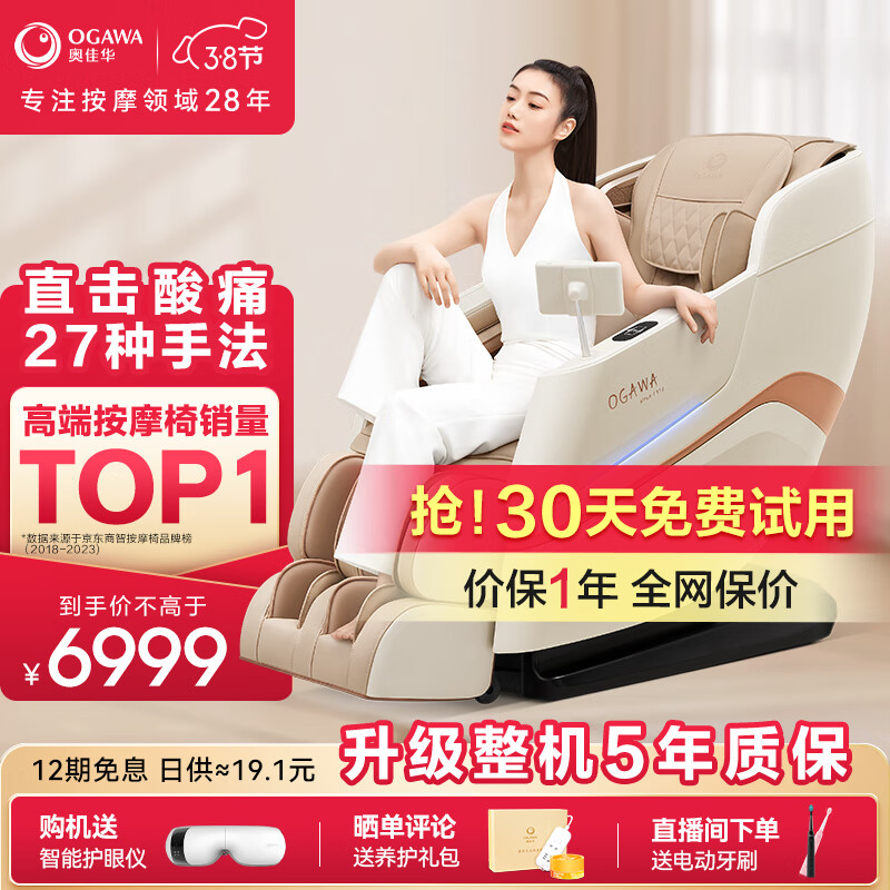奥佳华(OGAWA)按摩椅家用太空舱全身按摩小型小巧沙发多功能全自动电动按摩椅子3D机芯中医养生豪华头等舱M80 光暮杏价格:11999.00元!