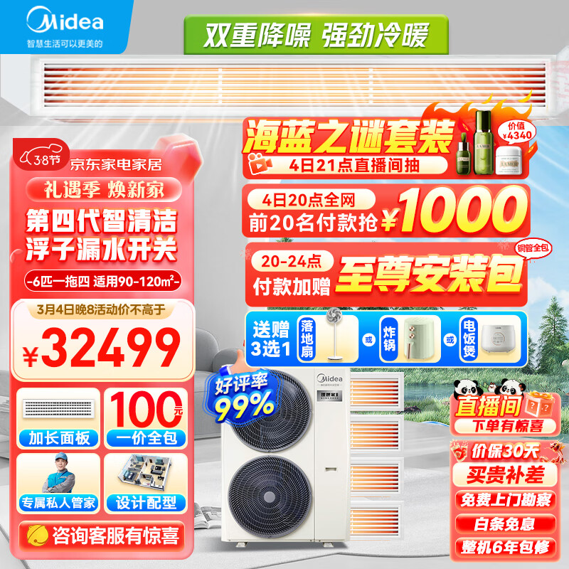 美的(Midea)中央空调一拖四风管机6匹小多联机理想家三代一级能效快速冷暖智能清洁MJV-140W-E01-LXⅢ价格:32599.00元!