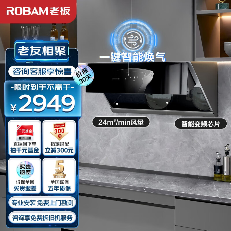 老板(Robam)抽油烟机探索家D7S侧吸式油烟机家用 24m3/min大吸力变频挥手智控吸油烟机1000Pa排油烟机28D7S价格:2949.00元!