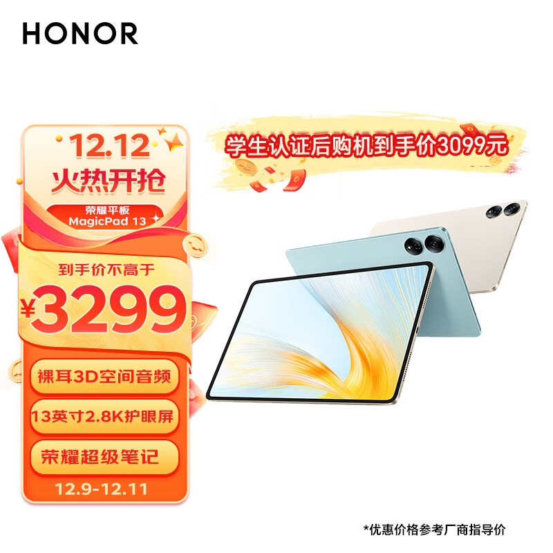 荣耀平板MagicPad 13英寸 8扬声器 144Hz高刷护眼 2.8K超清 移动办公影音娱乐平板 WIFI 12GB+256GB 星空灰价格:3299.00元!