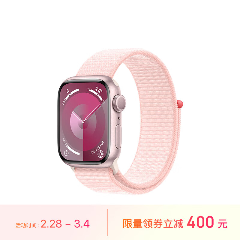 Apple/苹果 Watch Series 9 智能手表GPS款41毫米粉色铝金属表壳 亮粉色回环式运动表带 MR953CH/A价格:2899.00元!