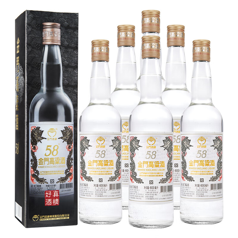 金门高粱 白金龙 清香型白酒 58度600ml*6瓶整箱装 龙年宴请送礼 (含礼袋)价格:1339.00元!
