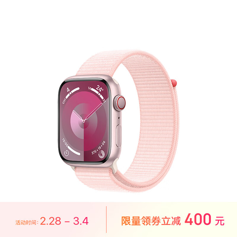 Apple/苹果 Watch Series 9 智能手表GPS+蜂窝款45毫米粉色铝金属表壳亮粉色回环式运动表带 MRPF3CH/A价格:3899.00元!