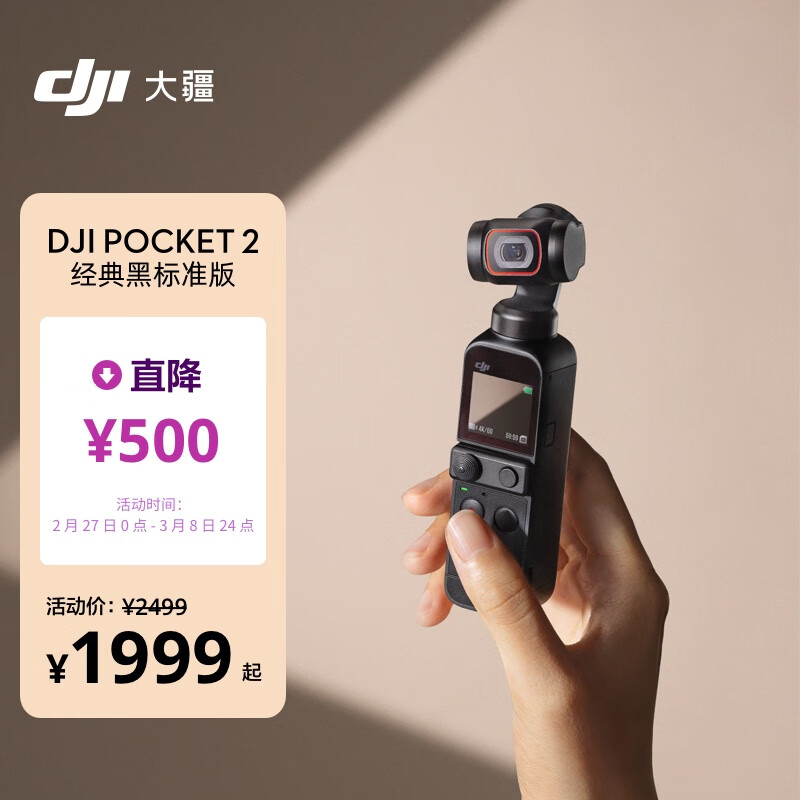 大疆 DJI Pocket 2 灵眸口袋相机手持云台摄像机便携式小型防抖运动相机 智能美颜vlog相机+128G内存卡价格:2103.90元!