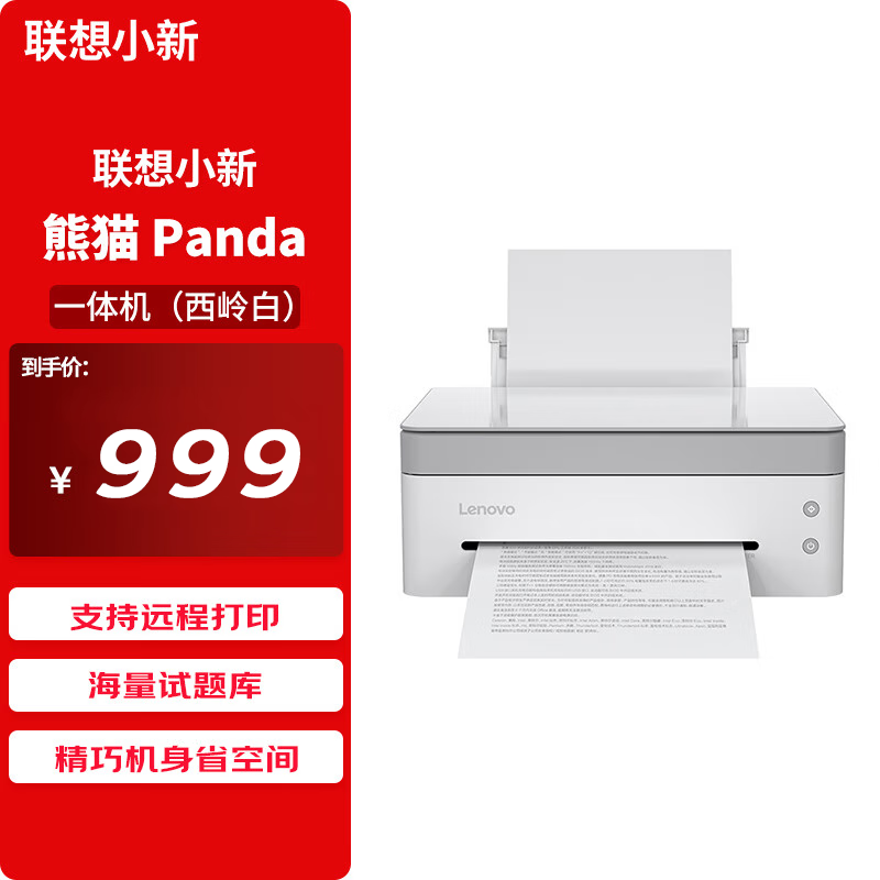 联想小新熊猫Panda打印机 学生家用办公商用 黑白激光高速打印/云打印/扫描/复印一体机 西岭白价格:999.00元!