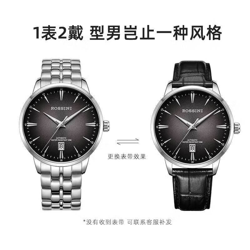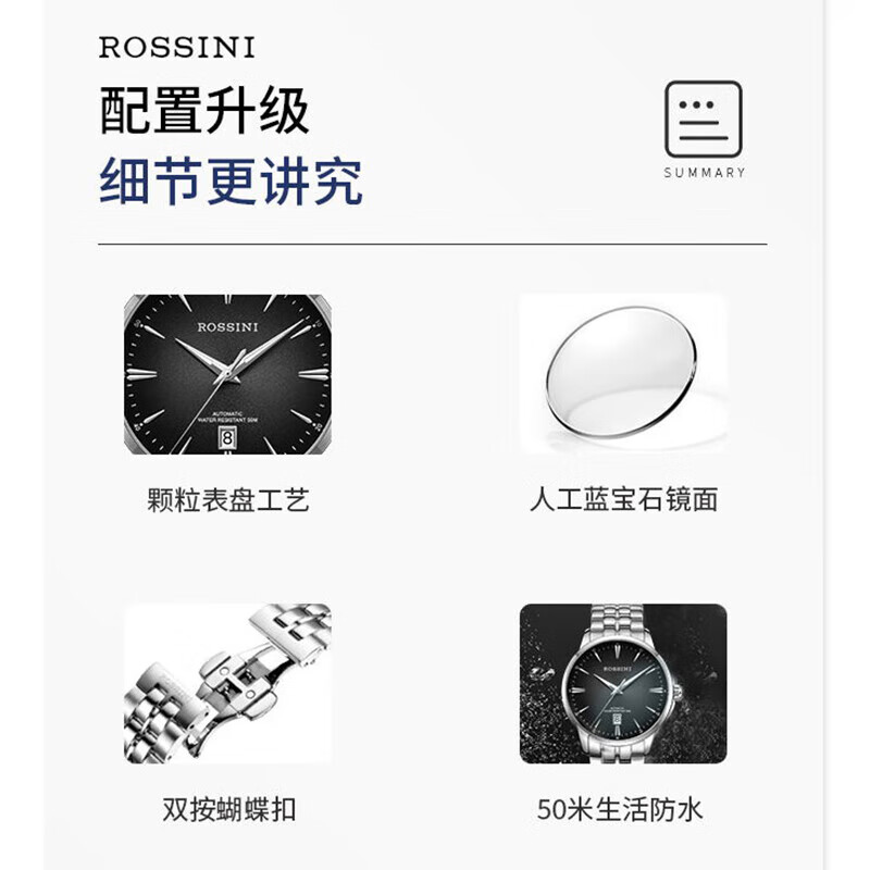 罗西尼(ROSSINI)手表男机械表黑盘钢带生日礼物送男友国表沉稳时尚商务防水 50127价格:2175.00元!