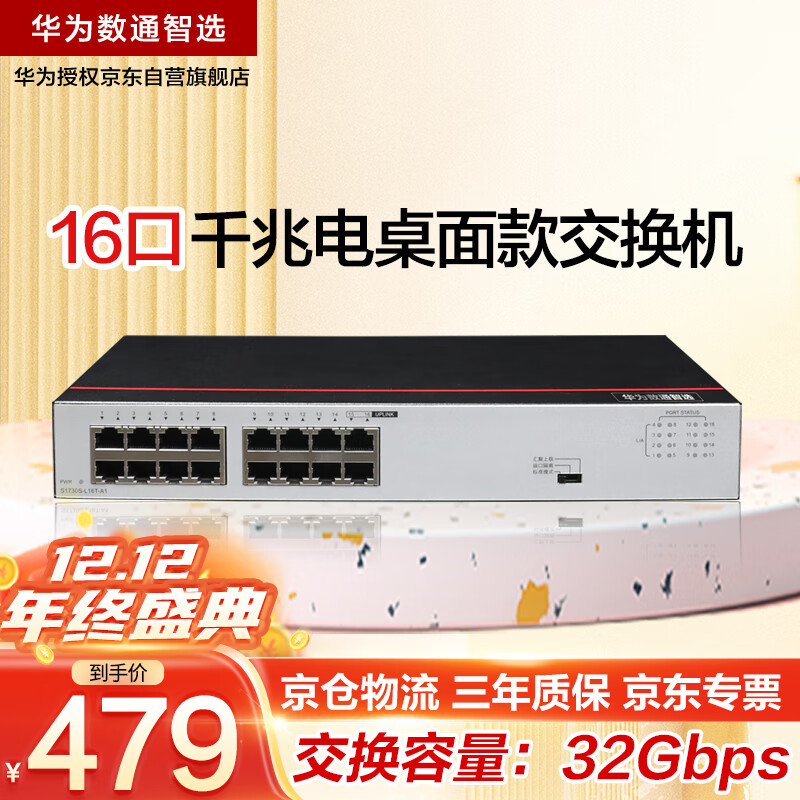 华为数通智选16口千兆交换机16口以太网电口网线分线器网络分流器集线器小型家用企业级 替代S1700-16G价格:539.00元!