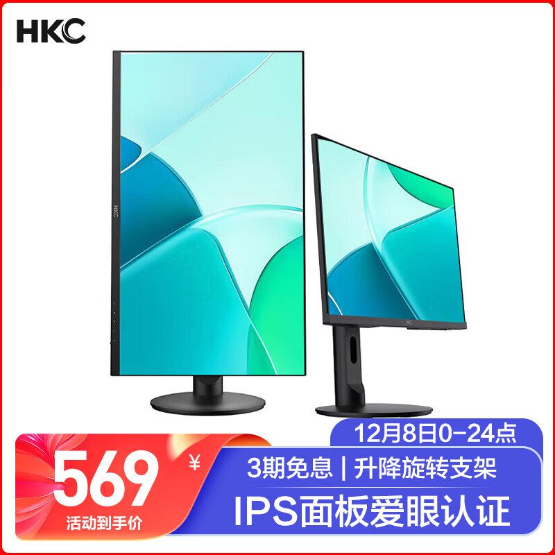 HKC 23.8英寸显示器 IPS 广视角 爱眼 滤蓝光不闪屏 人体工学支架 可壁挂 办公液晶台式电脑显示屏S24Pro价格:699.00元!