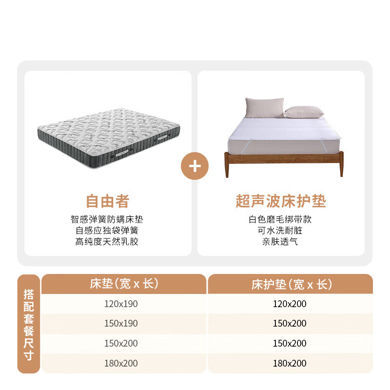 穗宝(SYMBOL)床垫+床护垫套餐 自由者床垫150*190+超声波床护垫150x200价格:3149.00元!