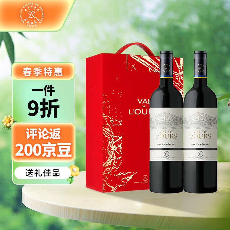 拉菲(LAFITE)雾禾山谷珍藏红葡萄酒750ml 双支礼盒装价格:999.00元!