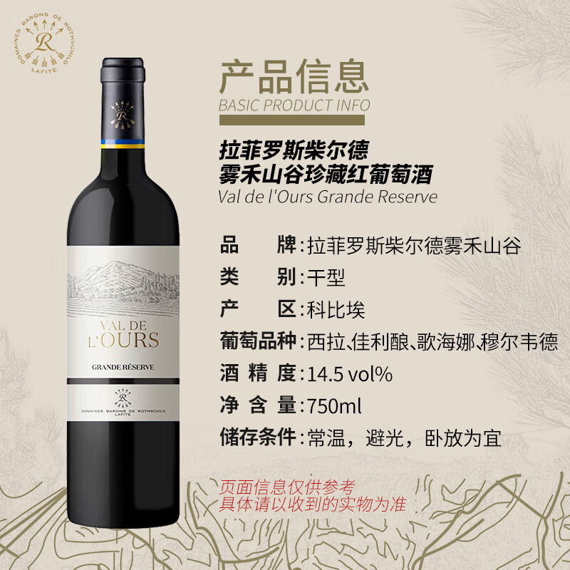 商品名称:拉菲拉菲(LAFITE)罗斯柴尔德雾禾山谷珍藏红葡萄酒750ml双支礼盒装法国进口葡萄酒
