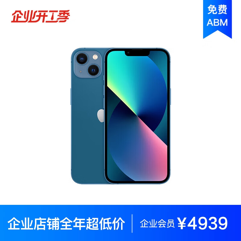 Apple iPhone 13 256GB 蓝色 ( A2634 ) 手机 支持移动联通电信5G MLE43CH/A*企业专享价格:4959.00元!