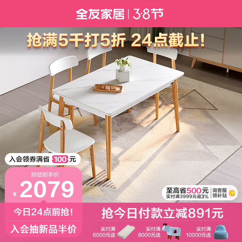 全友家居 餐桌北欧简约餐桌椅实木框架岩板台面饭桌餐厅家具DW1001价格:2970.00元!
