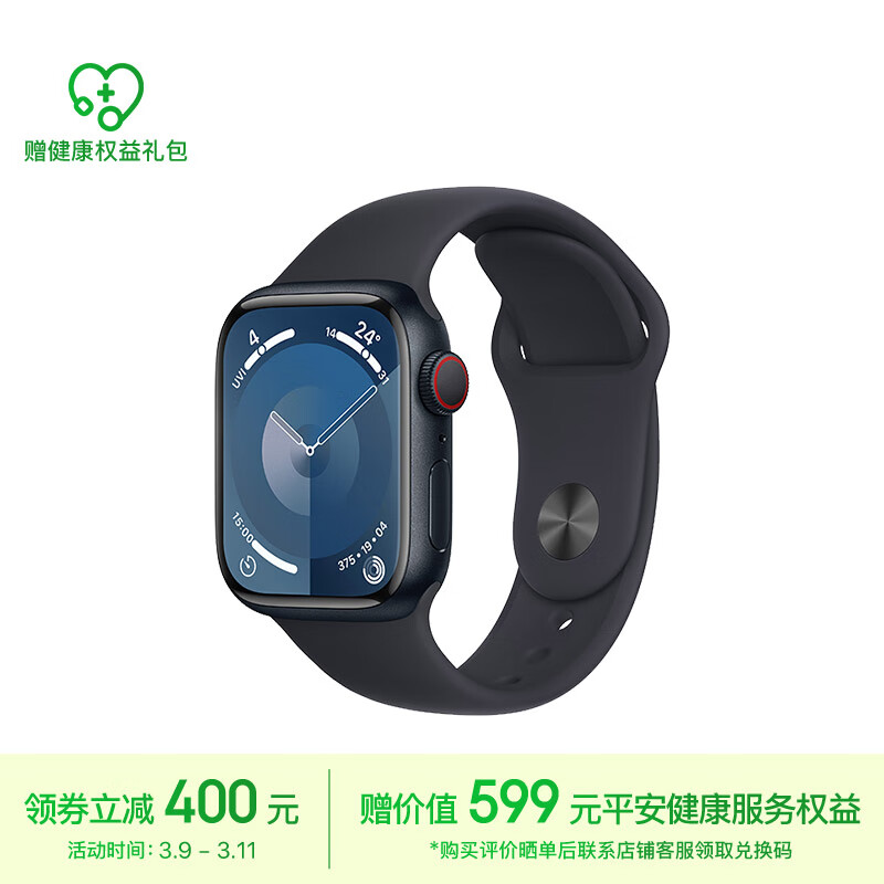 Apple/苹果 Watch Series 9 智能手表GPS+蜂窝款41毫米午夜色铝金属表壳午夜色运动型表带M/L MRJJ3CH/A价格:3799.00元!