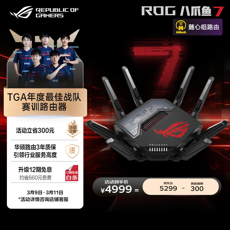 华硕(ASUS)ROG八爪鱼7电竞路由器穿墙王 双万兆口+四个2.5G口 三频万兆路由器 无线WiFi全场景加速 Ai路由器价格:5299.00元!