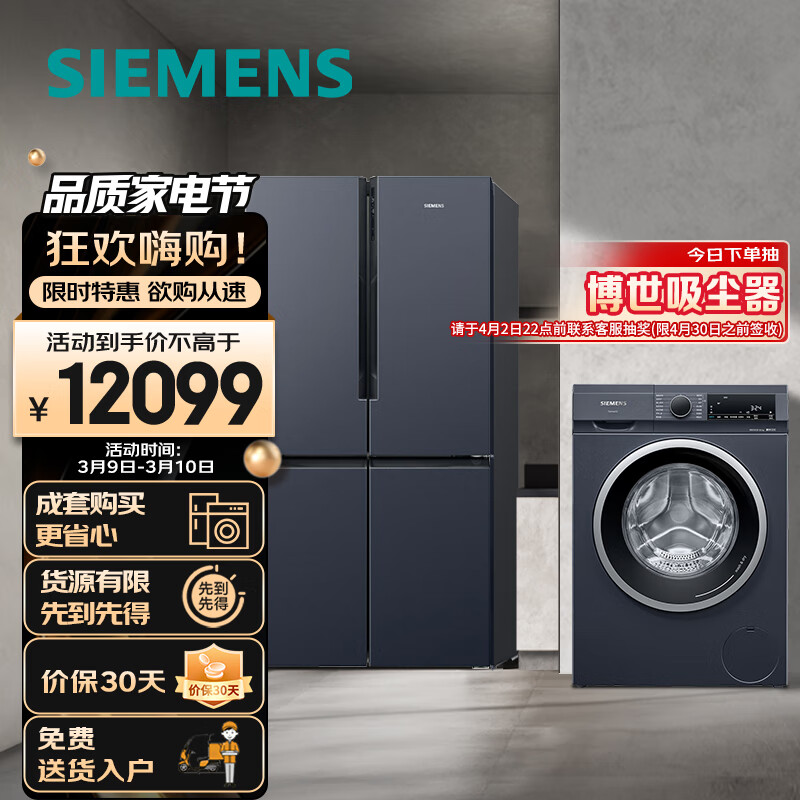 西门子(SIEMENS)605升大容量+10KG洗烘一体 变频冰洗套装K56L56CMEC+WN52A1X14W价格:12099.00元!