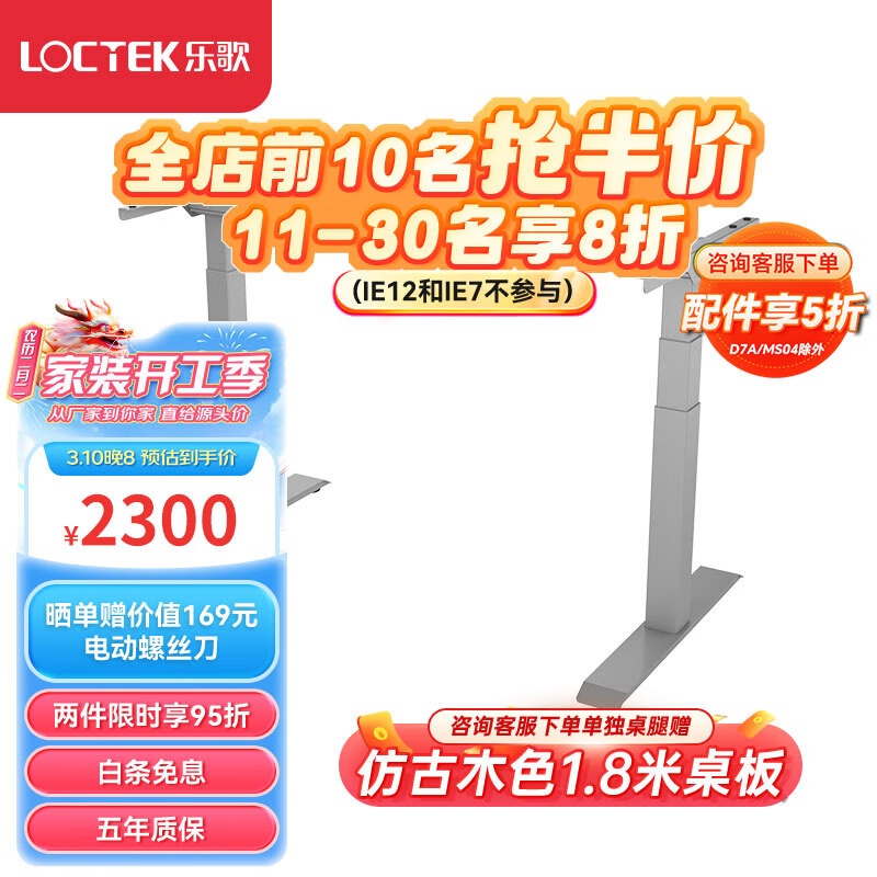 乐歌电动升降电脑桌站立办公学习桌家用写字书桌 E5-N银灰桌腿价格:2300.00元!