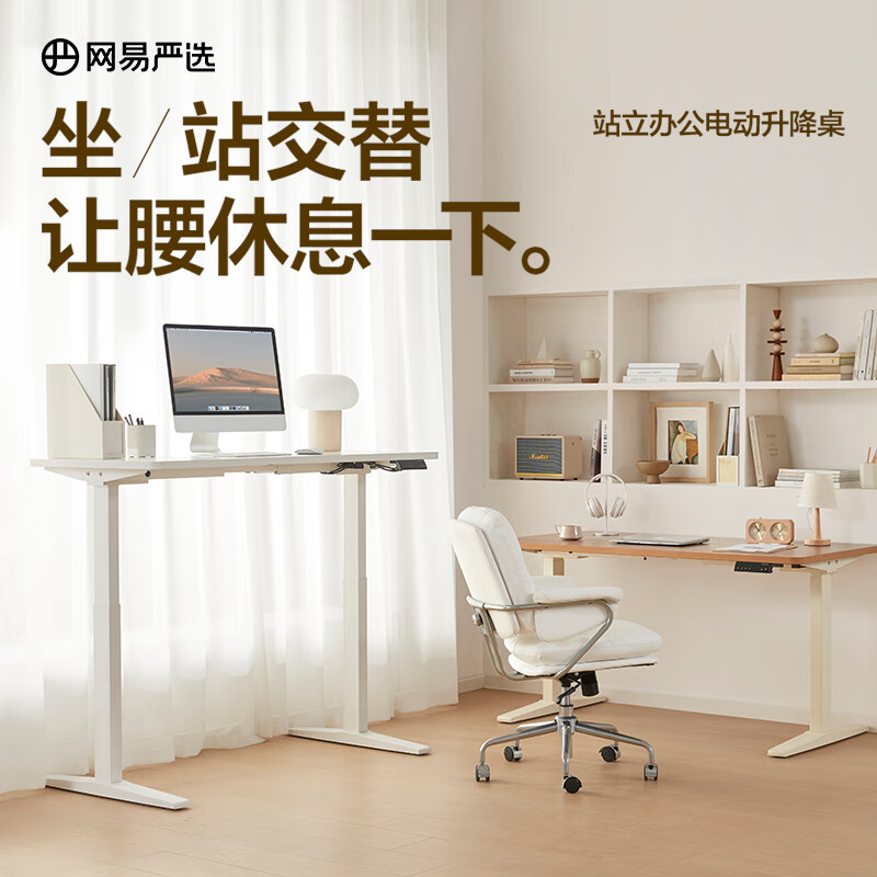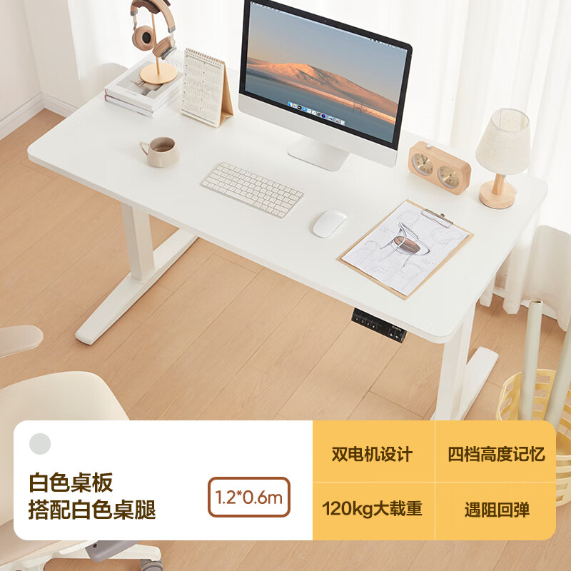 网易严选 电动升降电脑桌 站立办公升降台办公室书桌 白色1200*600mm价格:1999.00元!