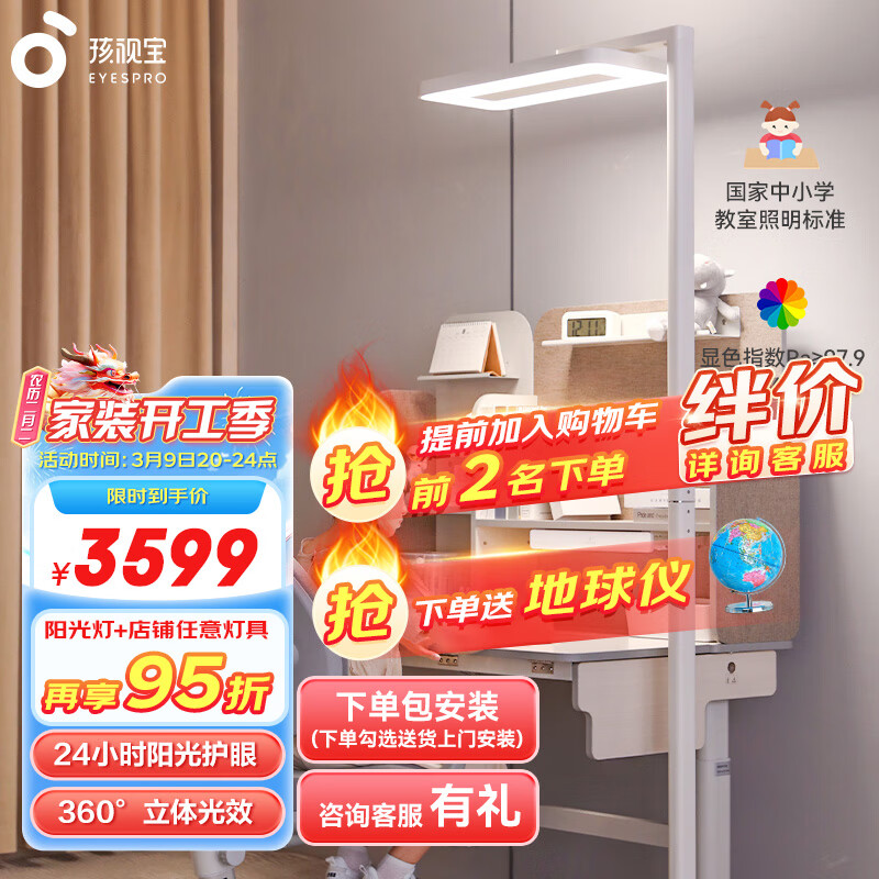 孩视宝立式护眼台灯学习专用全光谱落地大路灯儿童书房LED钢琴灯130WE3B价格:6999.00元!