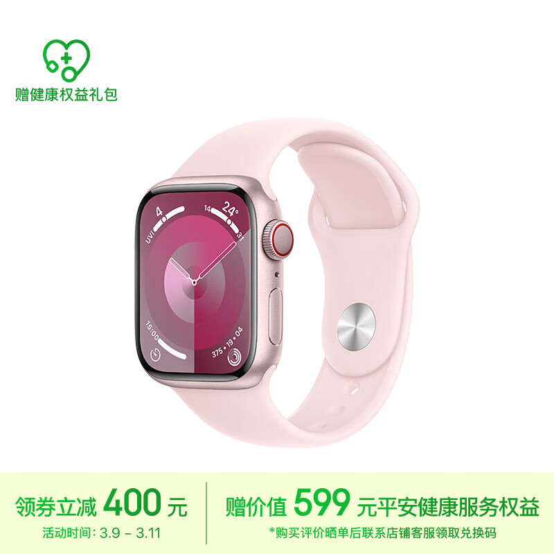 Apple/苹果 Watch Series 9 智能手表GPS+蜂窝款41毫米粉色铝金属表壳亮粉色运动型表带M/L MRJQ3CH/A价格:3799.00元!