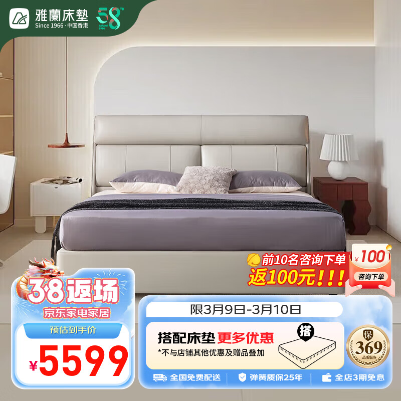 雅兰简约风真皮床主卧靠背可调节双人皮艺床气动 伯明翰 1.5*2米价格:6599.00元!