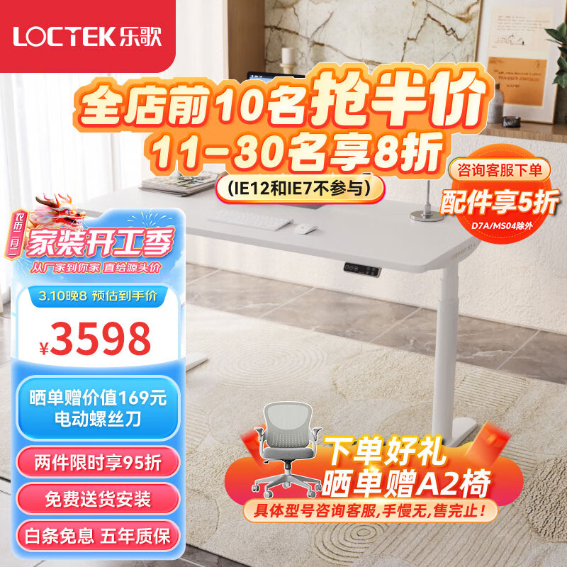 乐歌电动升降桌电脑桌站立办公学习桌写字桌书桌 E6-HD/1.6m白色套装价格:3988.00元!