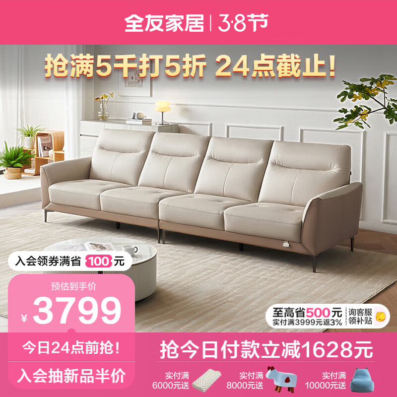 全友家居直排沙发现代简约客厅头层牛皮大小户型三人位真皮沙发102710价格:5427.14元!