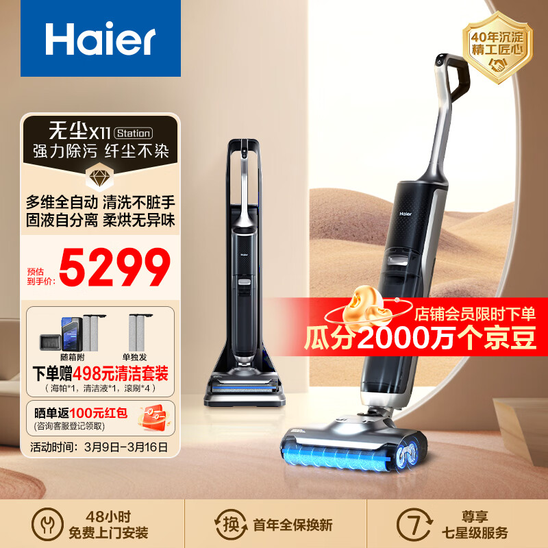 海尔(Haier)无线智能家用洗地机吸洗拖一体自动清洗全自动拖地机扫地机器人自动上下水无尘X11station基站款价格:5599.00元!